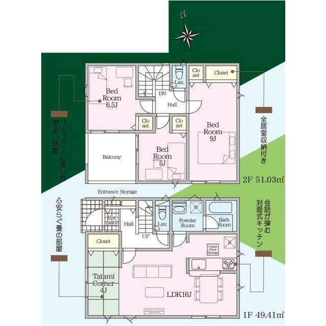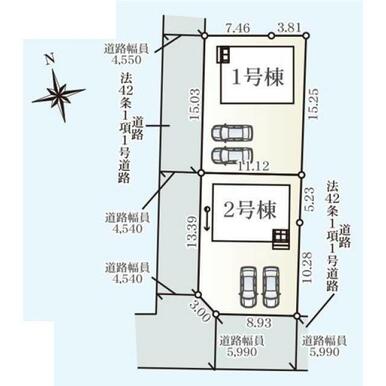 号棟番号:1号棟 区域 地区計画 建物面積に別途ルーフバルコニー約7.29平米有り |