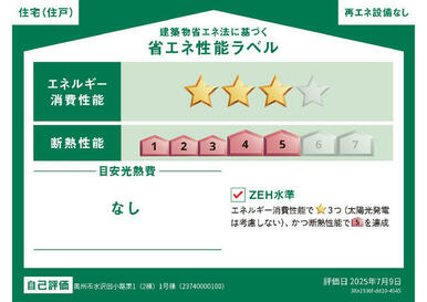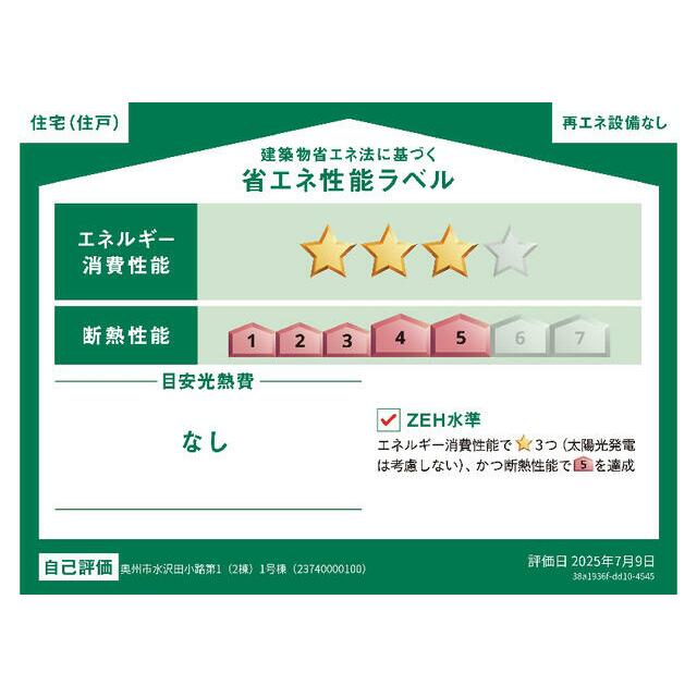 | エネルギー消費性能 | ★★★(削減率20%達成) | 断熱性能 | 5段階/7段階中 |